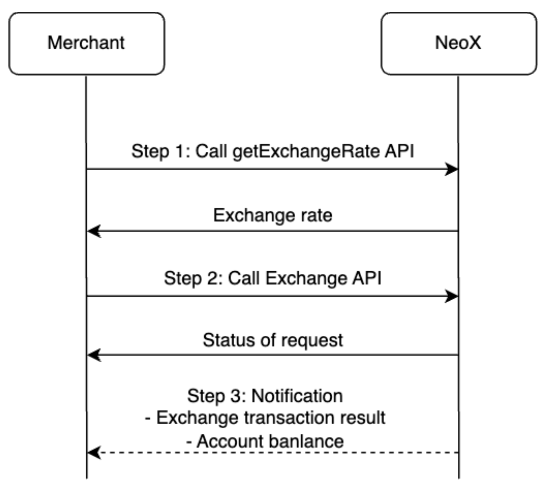 * Step 2: Merchant call Exchange API. If returned status is PASSED, NeoX will process