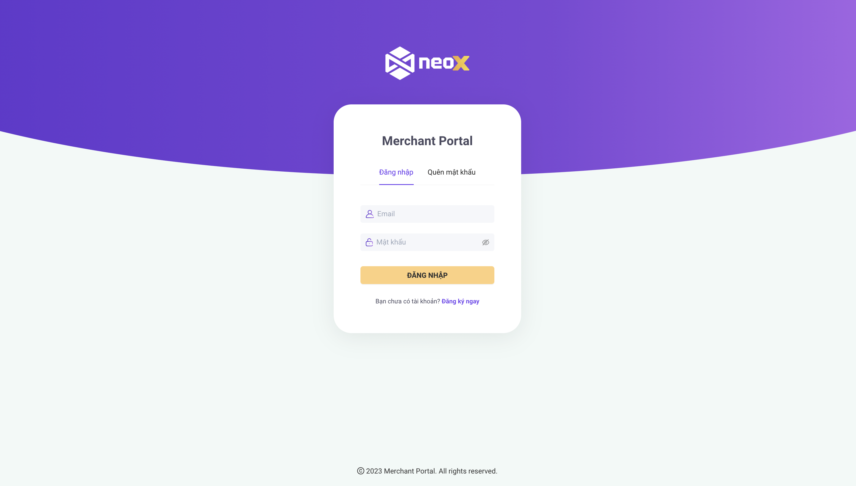 Go to <https://portal.neopay.vn/merchant>, choose "Login". Use registered emails and passwords to log in.