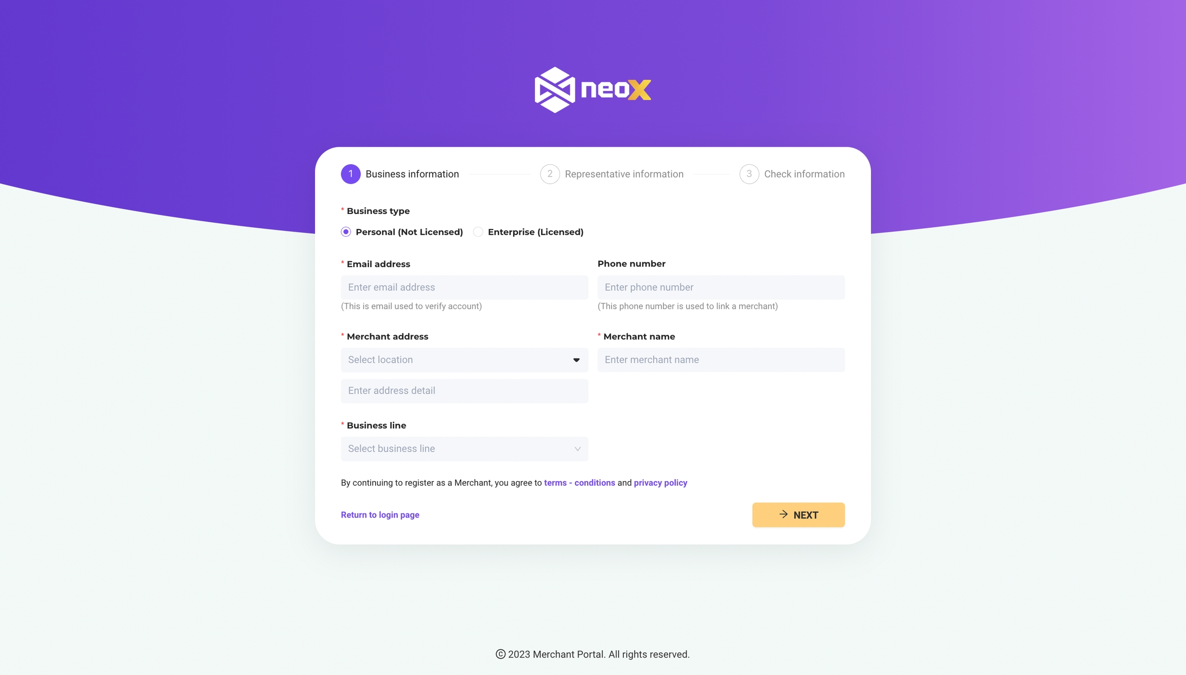 Step 1: Go to https://portal.neopay.vn/merchant and select "Register now".