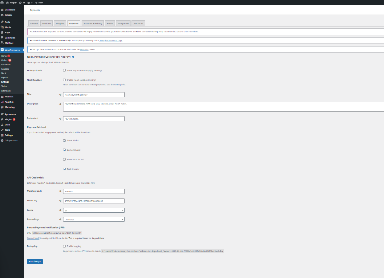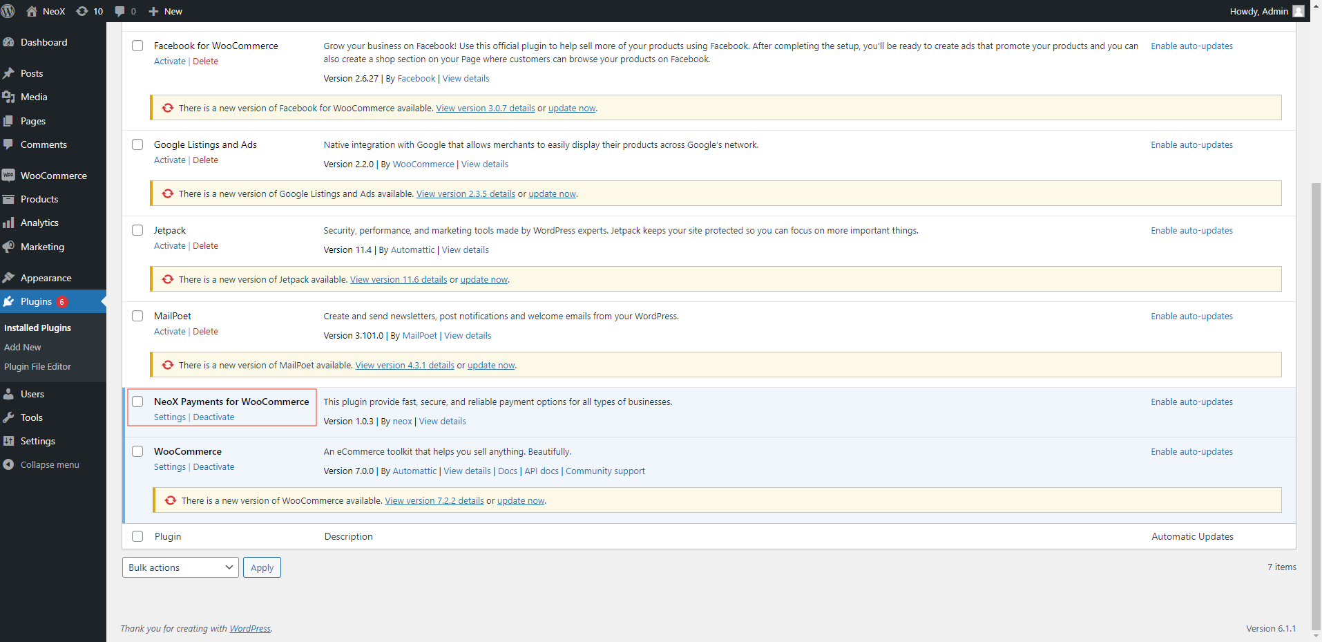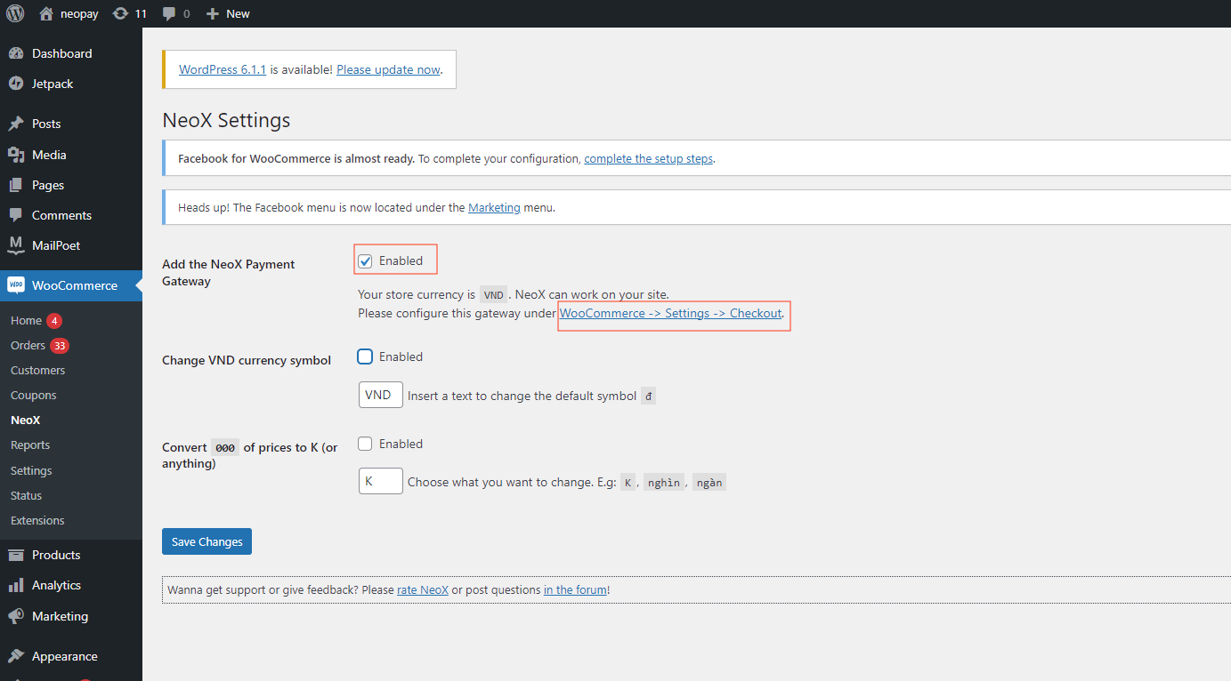 Step 5: Click on Settings of NeoX Payment for WooCommerce plugin