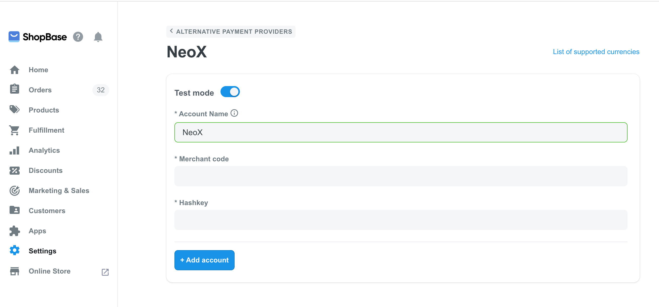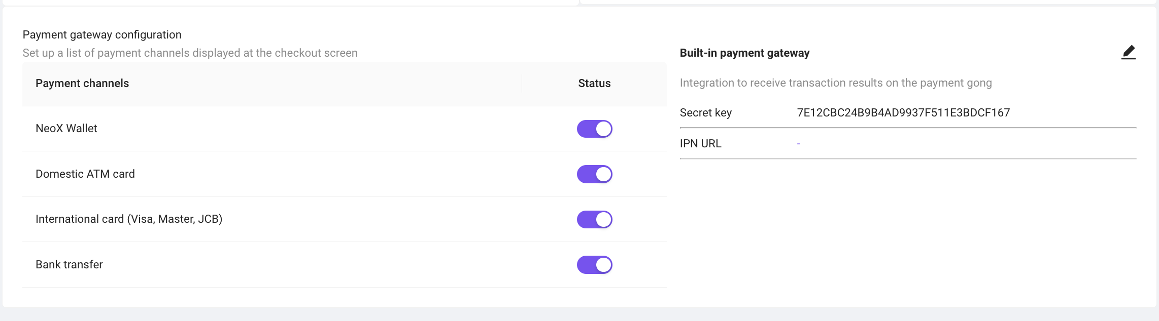 Enable/Disable: Allow to display NeoX payment gateway on website.