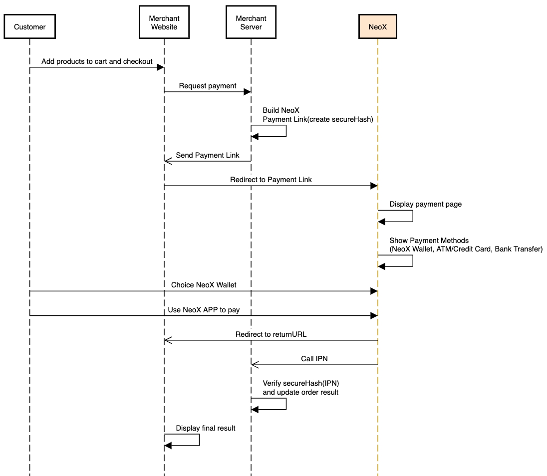 Sequence diagram of payment by NeoX Wallet